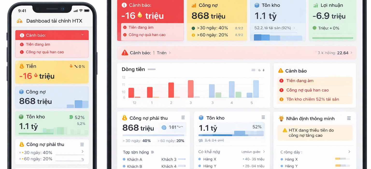Phân tích từng nghiệp vụ (1) Nợ 112 / Có 558 → 1,3 tỷ 👉 Nhận tiền về tài khoản ngân hàng • Nợ 112: Tiền gửi ngân hàng tăng • Có 558: Có thể là tài khoản ghi nhận khoản thu 📌 Ý nghĩa: → Thu tiền từ việc bán/thanh lý hệ thống điện: …