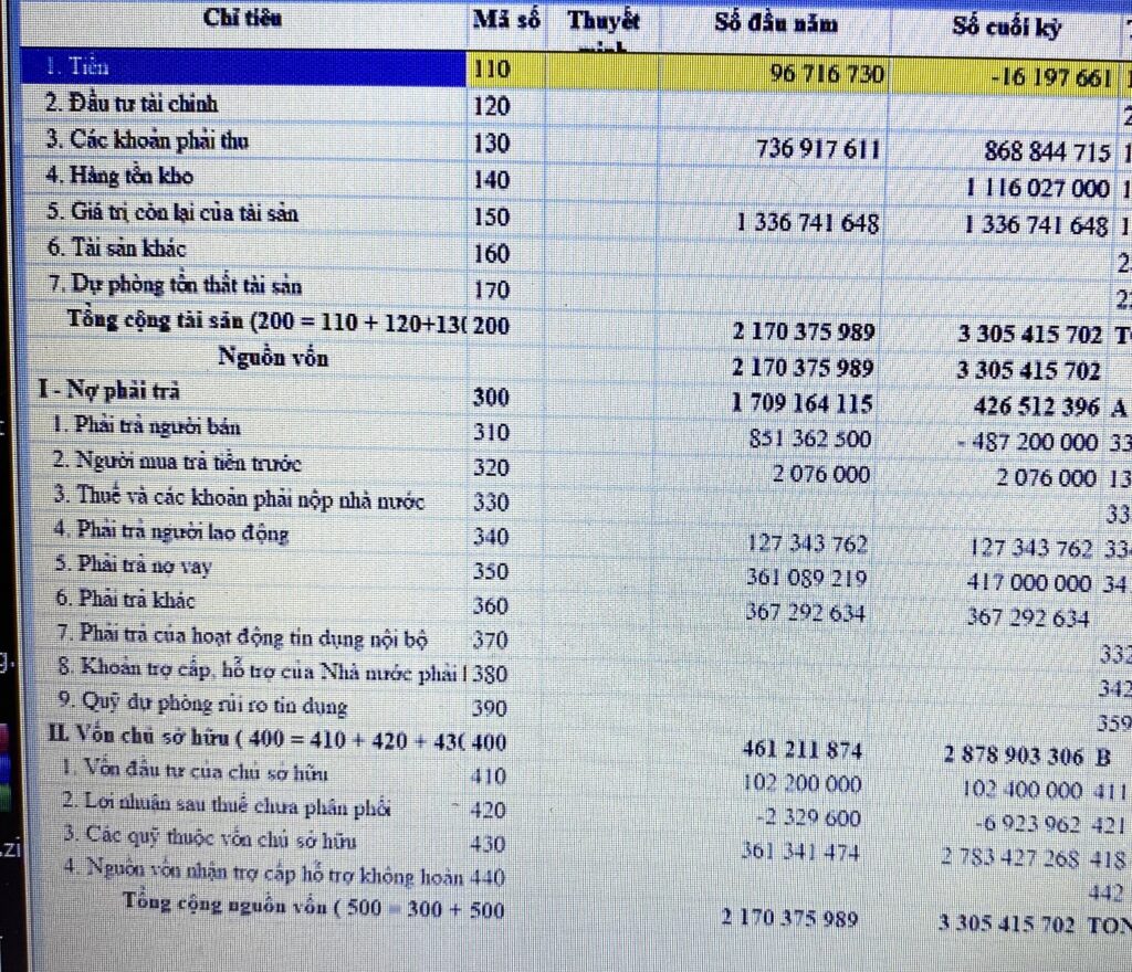 • Tiền và tương đương tiền (110):